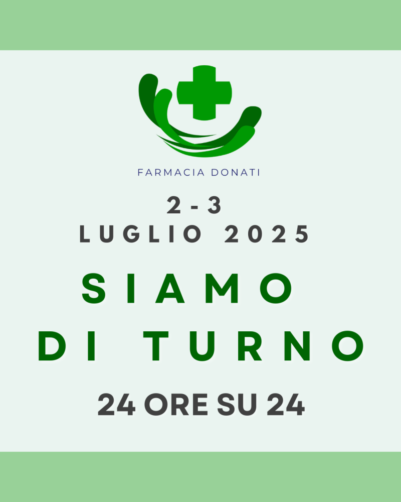 Farmacia Donati sarà aperta per turno 24 ore su 24 nei giorni di MERCOLEDI' 2 e GIOVEDI' 3 LUGLIO.