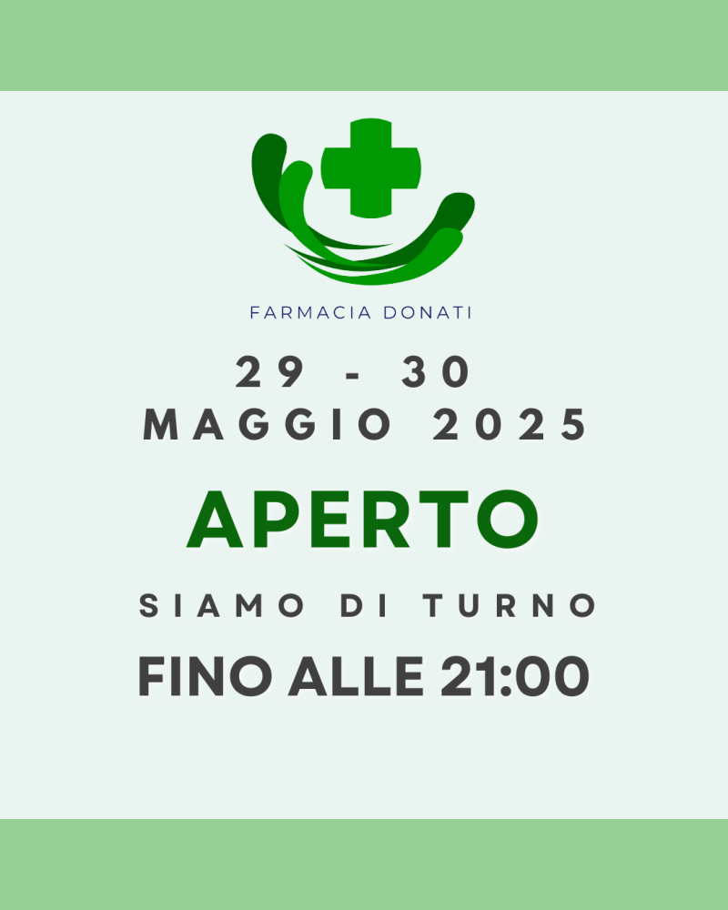 GIOVEDI' 29 e VENERDI' 30 MAGGIO la Farmacia Donati rimane aperta fino alle ore 21:00!